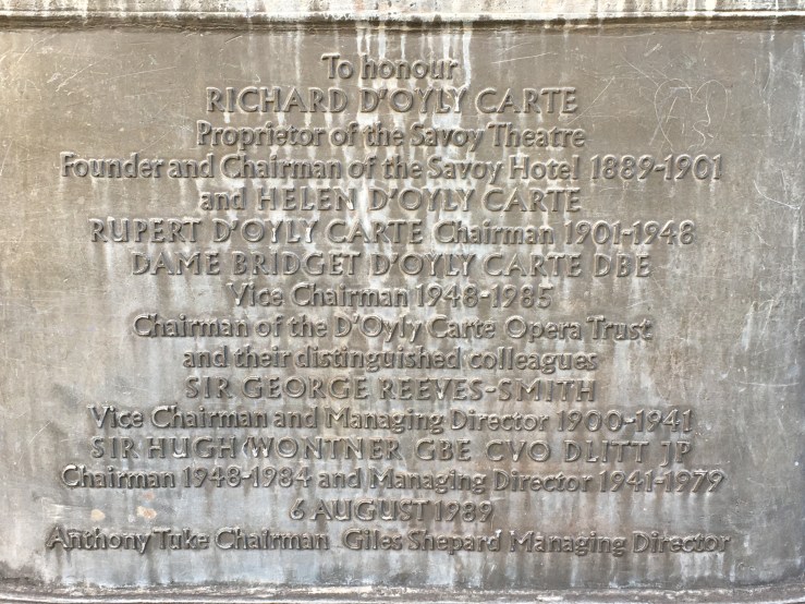 Perhaps this is one reason why the large engraved planter in Victoria Embankment gardens, opposite the riverside entrance to the Savoy Hotel, which was dedicated to key players in the D’Oyly Carte organisation in 1989, glosses over Helen’s contribution. Her name is there but is the only one without an official role to go with it. If a passer-by stopped to read the names, she might assume that Helen was simply there by dint of her marriage, a polite nod to the boss’s wife. But you know the real story.