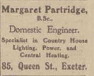 Margaret was an early member of the Women’s Engineering Society and in March 1923 she spoke at their first conference in Birmingham. A journalist said that they had not met ‘a more hopeful and cheerful body of women’ for a long time. Margaret presented a paper on Engineering Contracts in Country Districts. ‘The very practical and breezy account of her short career as a Contracting Engineer given by Miss M. Partridge showed that an engineer’s life in a rural district is anything but a continual round of dull monotony’, reported the W.E.S. ‘Miss Partridge not only handles live wires, she is one herself’, was the verdict in one newspaper. Margaret was good friends with the organisation’s secretary, Caroline Haslett. Together they wired up Caroline’s St John’s Wood flat and shared their experiences of navigating a male-dominated world, where industry conferences ran parallel agendas for ‘engineers’ and ‘ladies (‘Please tell me’, Margaret wrote to Caroline, as they prepared to attend one of these events, ‘am I a lady or an engineer?’) and a change in marital status meant signing a new set of company documents.