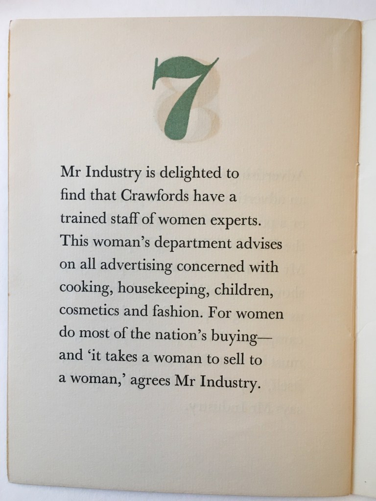 When Emily returned to Scotland to get married, Margaret and Florence moved into a flat with another colleague, Kathleen Maclachlan. William Crawford was an influential ally of women in the workplace. He was very positive about the opportunities that had opened for women at work as a result of the First World War and followed through by employing a lot of women in the 1920s, including the writer Antonia White. Recognising that it was women who influenced most purchasing decisions, Crawfords ran campaigns in industry publications emphasising how well-placed it was to create winning campaigns because it employed so many talented women.