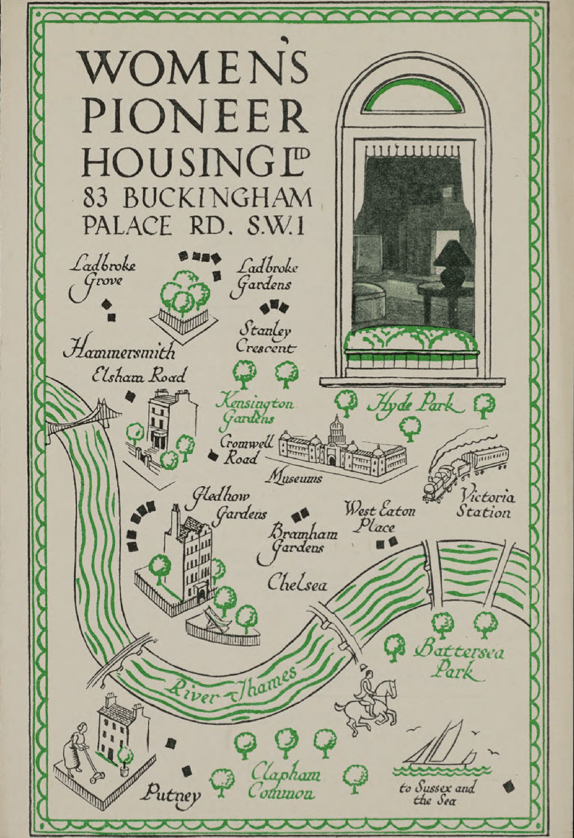 Founded by Etheldred Browning, an Anglo-Irish suffragette, in 1920, Women’s Pioneer Housing described itself as ‘the first women’s Public Utility Society’.