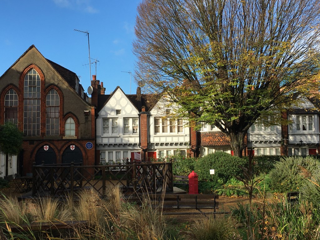In the shadow of the Shard stands a community garden, the Red Cross Garden, laid out by Julia Reynolds-Moreton, Countess of Ducie, in 1887. This was another of Octavia’s initiatives, taking the site of a paper factory to create a green space where the people living in the smoggy and crammed conditions nearby could relax, play and enjoy nature. She added a row of six cottages and a community hall, designed by Elijah Hoole.