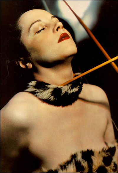 Yevonde immediately saw the potential of colour to shake up portrait photography but the early days were not easy. Colour images were more expensive to make and so had to seem worth it. She struggled to create a recognisably ‘human’ skin tone and careful co-ordination was needed of background, make up, clothing and props. Only small adjustments could be made during the development process, so even choosing the wrong shade of lipstick could be a costly mistake.