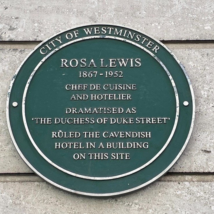 If you were a TV viewer in the 1970s you might well have come across Rosa Lewis, the chef and hotelier who ran The Cavendish Hotel on Jermyn Street for fifty years. Her life inspired a popular BBC drama, ‘The Duchess of Duke Street’, which started in 1976 and ran for two series. This was not her only fictional representation: to her immense displeasure she was the model for the character of Lottie Crump in Evelyn Waugh’s book ‘Vile Bodies’. She has been the subject of three full-length biographies, her portrait is in the National Portrait Gallery collection and on the site of her hotel there is a plaque in her honour. Now her name recognition would probably be extremely low but once she was a figure of great fascination. Why?