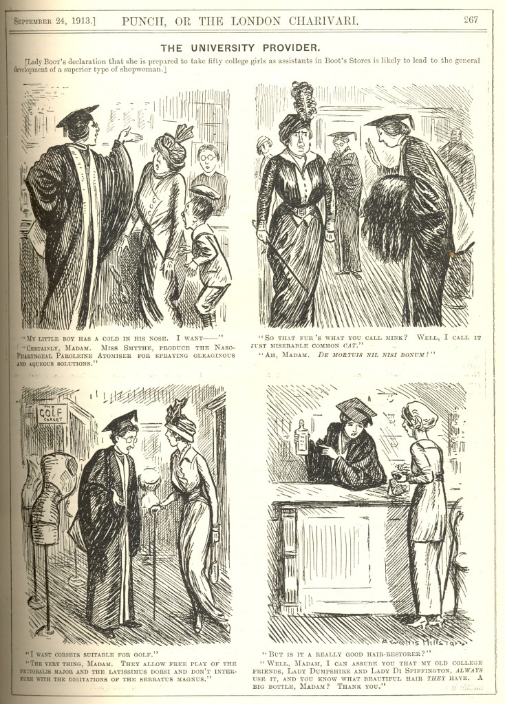 Her announcement in 1913 put Lady Boot back in the spotlight. It sparked plenty of public comment and a loud rebellion from Boots employees and almost immediately another letter was needed, this time to the ‘hundreds of young women’ employed by the firm. She reassured them that this recruitment decision would have no bearing on their jobs or their pay but it was not enough to quieten all the noise. The local branch of the Clerks’ Union tabled a motion two months later, criticising Florence’s idea and reminding Jesse that his loyalties should lie with the working classes: they made up the bulk of both his customers and college girls had no right to take the jobs of their daughters.
